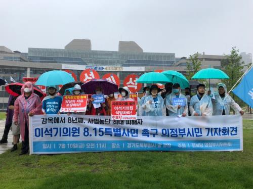 Áøº¸´ç ÀÇÁ¤ºÎ½ÃÀ§¿øÈ¸(À§¿øÀå ¹ÚÁ¤¹Î)´Â 7¿ù10ÀÏ ¿ÀÀü 11½Ã °æ±âµµ ºÏºÎû»ç ¾Õ ±¤Àå¿¡¼ À̼®±â Àü ±¹È¸ÀÇ¿øÀÇ 8.15 Ưº°»ç¸éÀ» Ã˱¸ÇÏ´Â ±âÀÚȸ°ßÀ» °¡Á³´Ù.