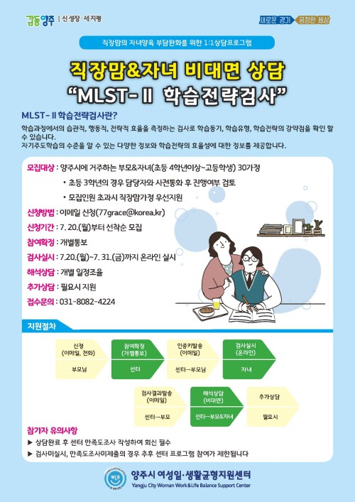 ¾çÁֽà ¿©¼ºÀÏ·»ýȰ±ÕÇüÁö¿ø¼¾ÅÍ´Â ¿À´Â 20ÀϺÎÅÍ Á÷Àå¿©¼ºÀÇ ÀÚ³à¾çÀ° ºÎ´ã¿Ïȸ¦ À§ÇÑ ÀÚ³àÇнÀÀü·« »ó´ãÇÁ·Î±×·¥ Âü¿©ÀÚ¸¦ ¼±Âø¼øÀ¸·Î ¸ðÁýÇÑ´Ù.