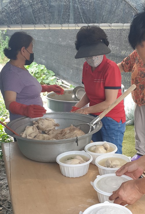 Äڷγª19¿Í ¹«´õÀ§·Î ½Ä»ç ÇØ°á¿¡ ¾î·Á¿òÀ» °Þ´Â ¾î¸£½ÅÀ» µ½±â À§ÇØ À̹ø Çà»ç¿¡´Â Äڷγª19·Î ÇÔ²² ½Ä»çÇÏ´Â ÀÚ¸® ´ë½Å À±¼±º´ ³²¹æ2ÅëÀå°ú ºÎ³àȸ¿ø 10¿©¸íÀÌ Âü¿©ÇØ µ¶°Å ¾î¸£½Å 40°¡±¸¿¡ ¿©¸§Ã¶ º¸¾çÀ½½ÄÀÎ »ï°èÅÁÀ» ºñ´ë¸é ¹æ½ÄÀ¸·Î Àü´ÞÇß´Ù.