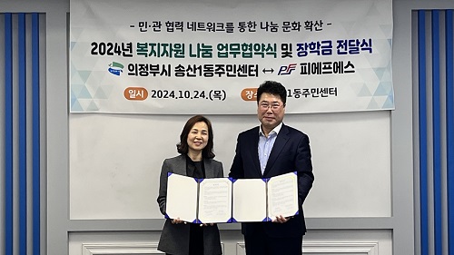 ÀÇÁ¤ºÎ½Ã ¼Û»ê1µ¿Áֹμ¾ÅÍ(µ¿Àå ±è¼ö°æ)Àº 10¿ù 24ÀÏ ¿ëÇöµ¿ ¼ÒÀç ÇÇ¿¡ÇÁ¿¡½º(´ëÇ¥ ±èÇüÈ£)¿Í º¹ÁöÀÚ¿ø ³ª´®À» À§ÇÑ ¾÷¹«Çù¾àÀ» ü°áÇϰí Çß´Ù°í ¹àÇû´Ù.